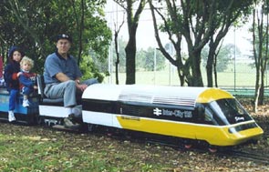 The Intercity HST 125 is a BoBo Petrol Hydraulic 7.25" Loco. These were introduced in England in the 1970's for fast comuter trains. Running speed of 125mph are attained where the track is suitable. Due to it's bumble bee look it was given the name "STING"