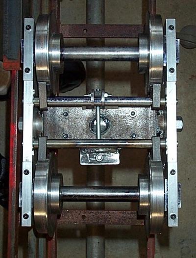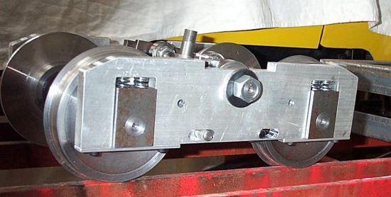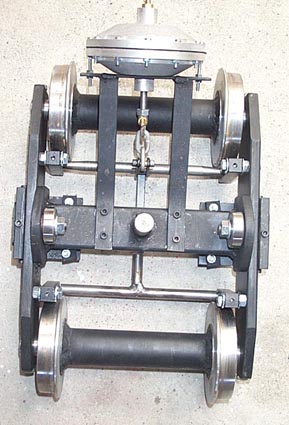 I later modified the bogies by fitting 4 top rollers per bogie to stop the tipping of the trunion on the pivot pin.