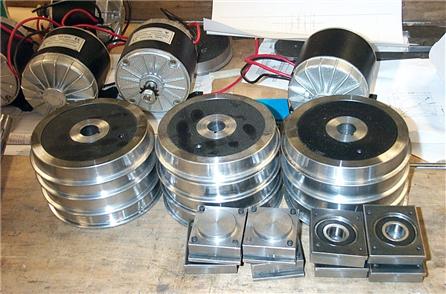 By the end of October the project was well underway. Twelve wheels, axle boxes, 4 motors and sundry bits were accumulated and are shown here awaiting assembly.